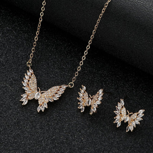 Affordable Luxury Angel Wings Butterfly Earrings & Necklace Two-Piece Set